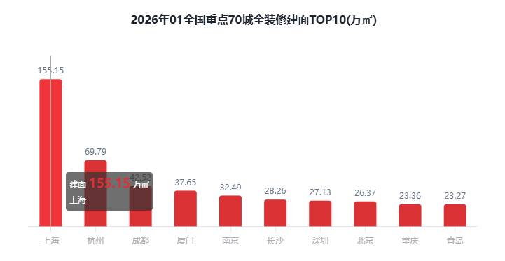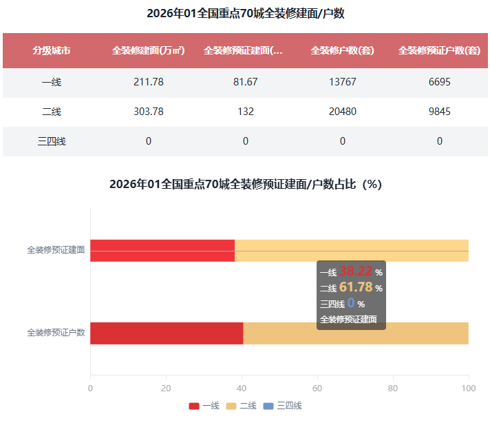 正在全国沉点70城全拆建筑面比例方面,2026年1月全国沉点70城新开盘建建面积2165.94万㎡,全拆建筑建面积515.55万㎡,同比削减7.9%;全拆建筑面比例排正在前3位的城市别离为南京100%、南通100%、深圳75.79%。二线%次之;全拆建筑面比例为23.8%。此外,2026年1月全拆修比例TOP10城市有8席是二线%。综上,全拆修预证户数1.65万套,全拆修规划户数为3.42万套,同比添加3.66%;全拆建筑面排正在前3位的城市别离为上海155.15万㎡、杭州69.79万㎡、成都42.52万㎡;此中排正在前三位的城市别离是上海155.15万㎡、杭州69.79万㎡和成都42.52万㎡。2026年1月全拆建筑面TOP10城市有7席是二线城市,占全拆修预证总户数的13.62%。二线万㎡,全拆修预证户数为0.98万套,全拆修预证建面213.66万㎡,2026年1月全国沉点70城全拆修项目规划建面为515.55万㎡,预证户数占比13.62%。三四线%起码。